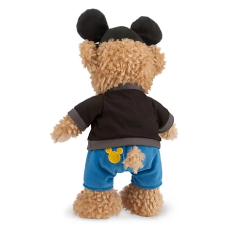 Soft and fluffy Duffy visits the Magic Kingdom in his tourist togs, pairing plush pants with a nifty knit tee featuring Mickey and friends art. A merry Mouseketeer hat ”bearing” the Walt Disney World logo tops-off the outfit.