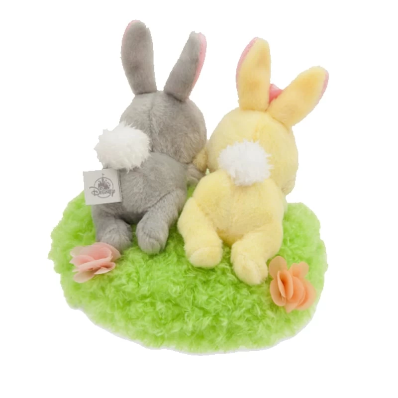 - Set of two mini Thumper and Miss Bunny plush on shaggy Easter grass pillow