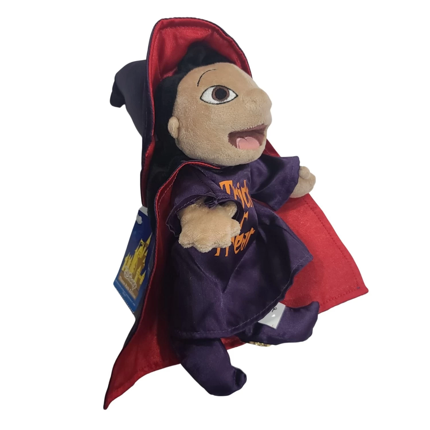 Trick or Treat, Give Me Something Good to Eat! This Lilo plush is ready for Halloween with her Witch costume and Jack O’Lantern candy bucket.
