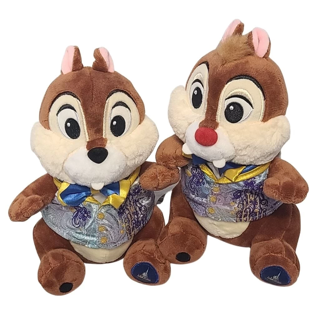 Soft plush pair Chip ‘n Dale are full of mischief and merriment for Walt Disney World’s 50th Anniversary celebration wearing iridescent ”brocade” vests with matching bow ties and golden trims.