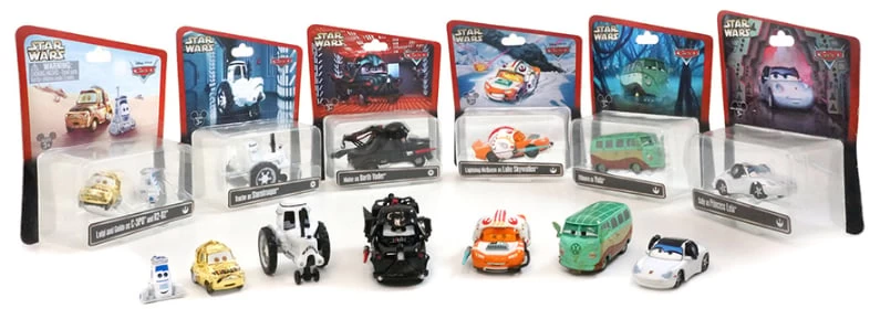 This Special Limited Release Action Figure Set features each of the CARS animated movie characters, portraying one of the Star Wars characters! You can pick the car you want, or pick the whole Set (see our other listings)! Each action figure comes sealed in the display pack on the card back.