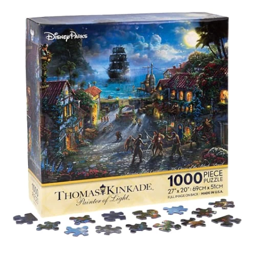 The buccaneering crew of the Black Pearl battle it out on the cobbled streets of a picturesque port in this swashbuckling scene. Inspired by the popular film, this 1000-piece puzzle bears all the hallmarks of the ”Painter of Light.”